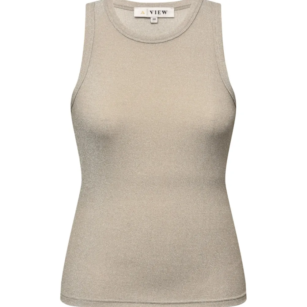 Smuk glimmertop fra A View. Toppen er lavet i et elastisk materiale, der gør den fleksibel og behagelig at have på.