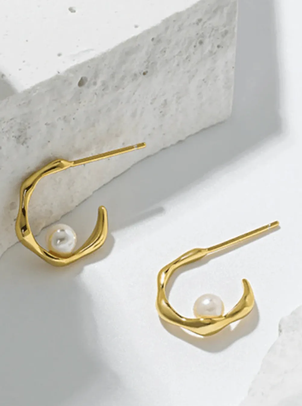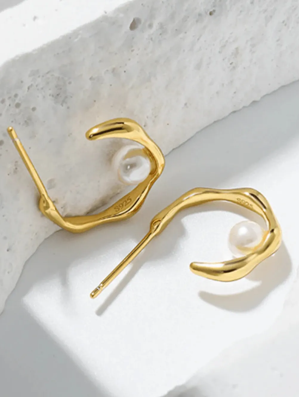 Materiale: 18 karat forgyldt 925 sterlingsølv / 13 mm i diameter + perle 2,5mm
