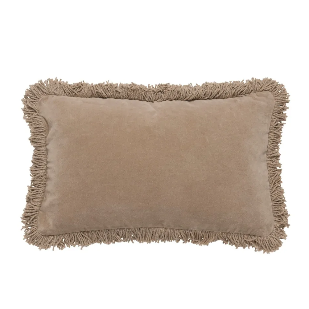 Flot og dekorativ pyntepude med tråde langt kanten fra Cozy Living.