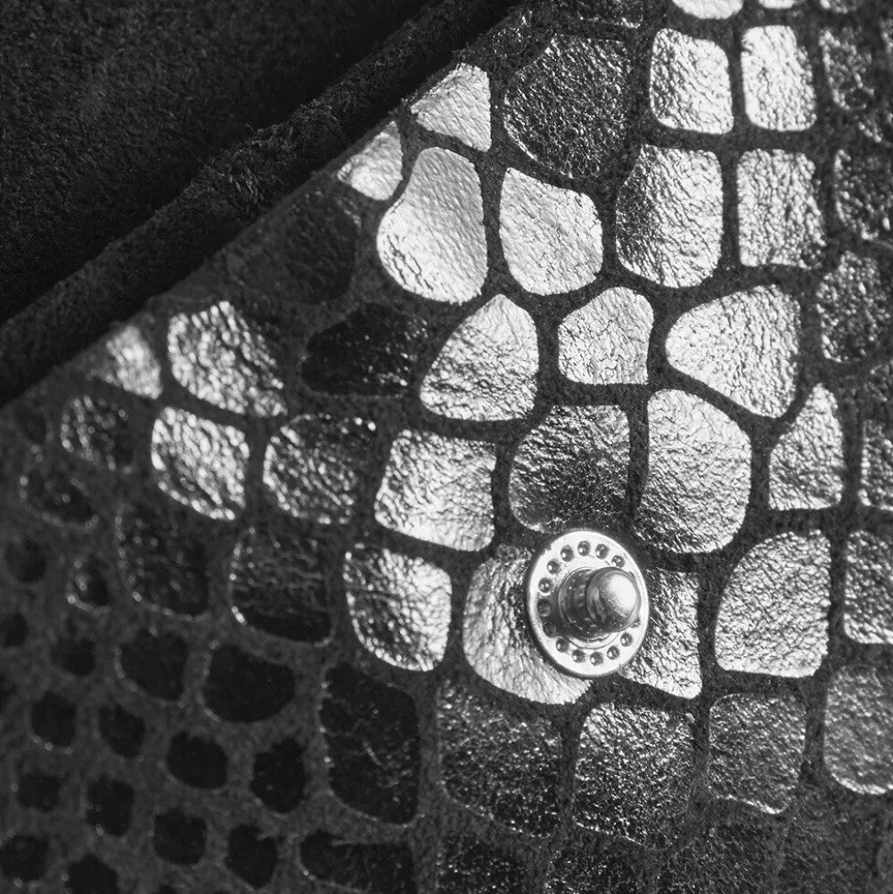Farve: Black croco / Materiale: 100 % kalveskind / H: 8 x W: 10 x D: 1 cm