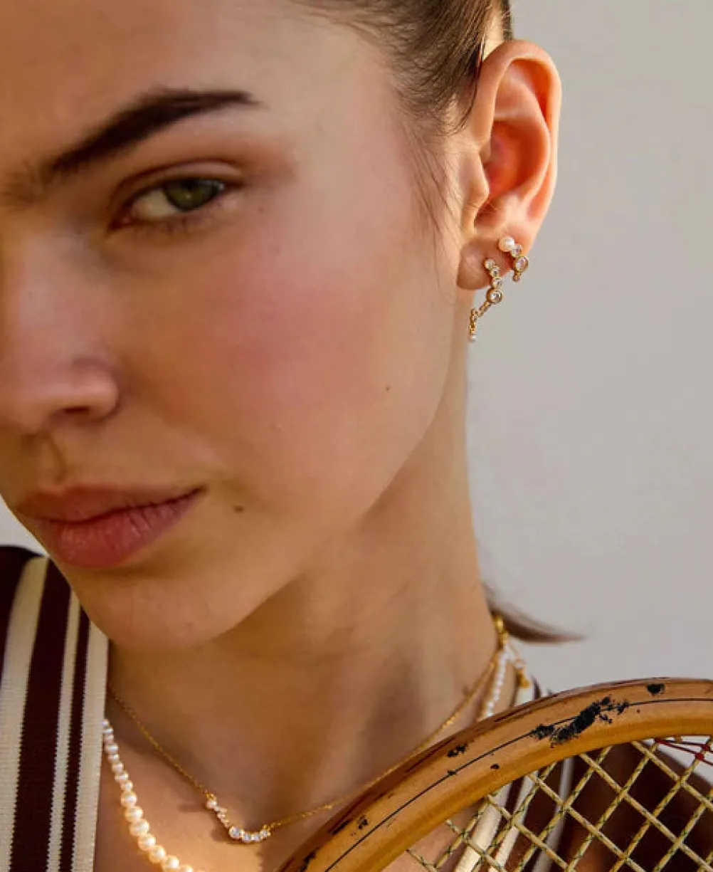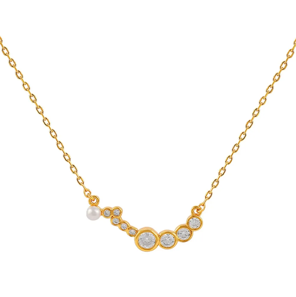 Smuk halskæde fra Hultquist Copenhagen med vedhæng med små sten og hvid perle.
