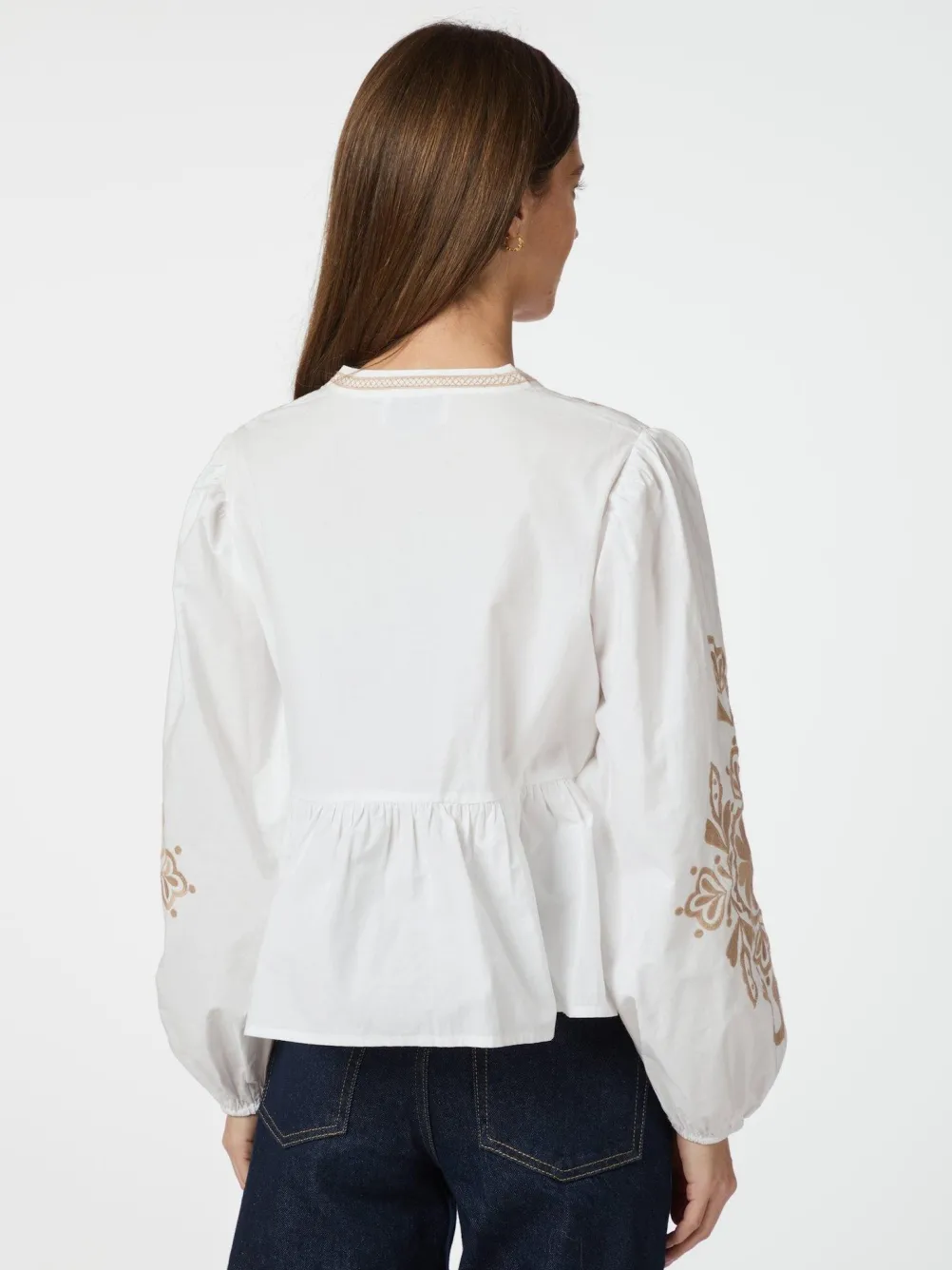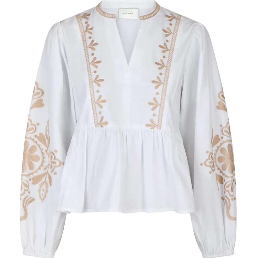 Flot boheme-inspireret bluse fra Neo Noir med fine broderingsdetaljer. Med vidde i ærmerne.