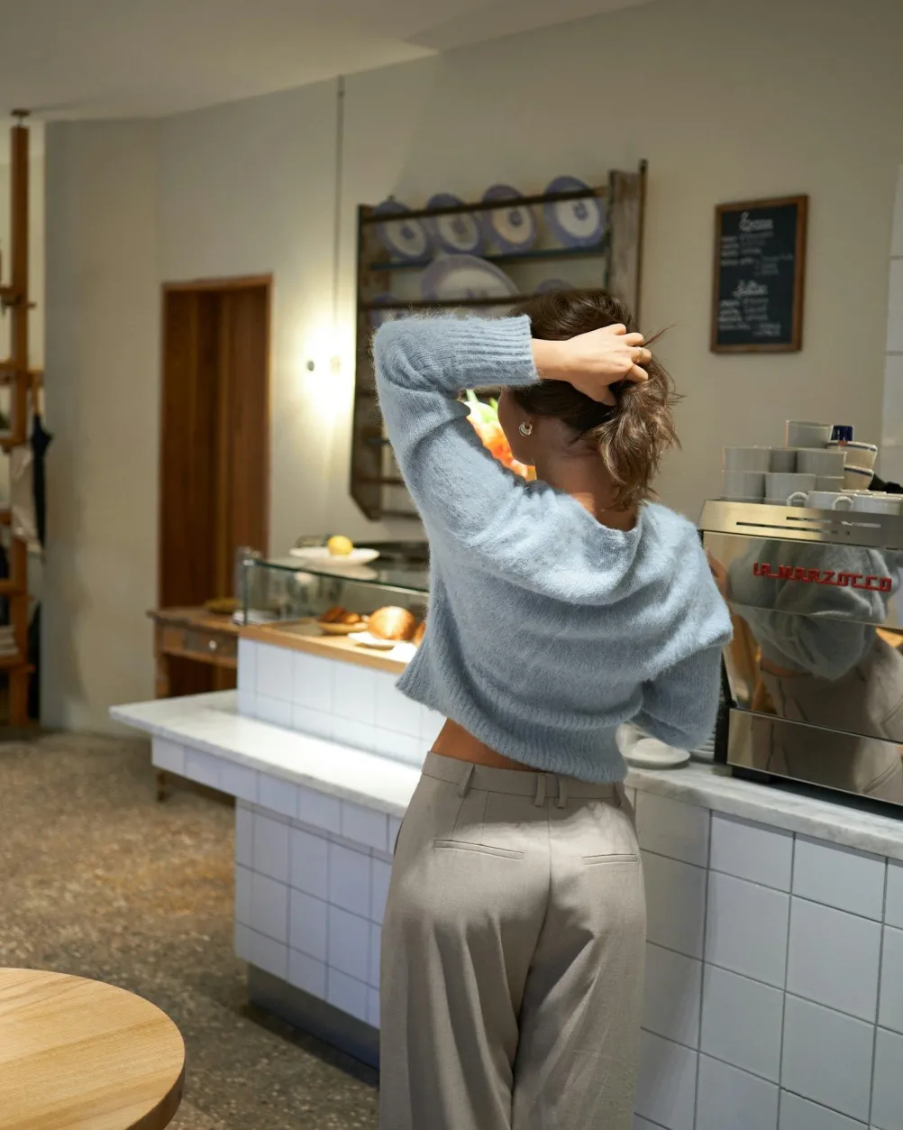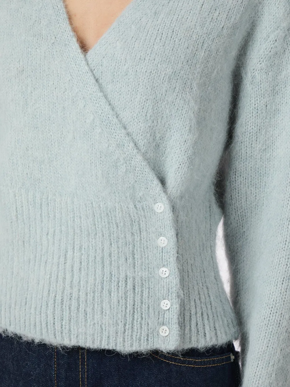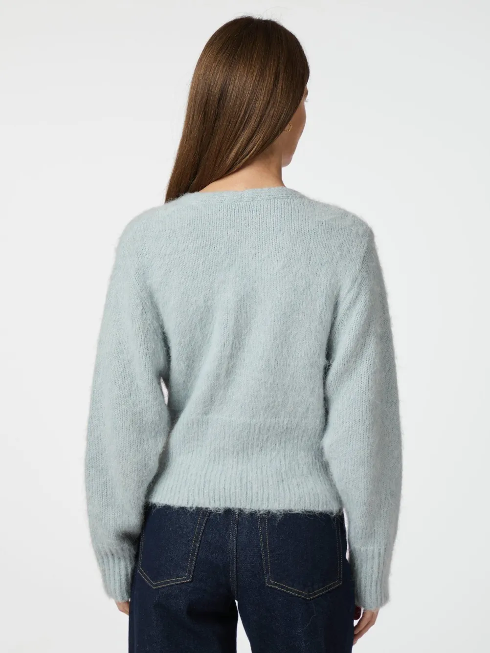Elegant fluffy strik fra Neo Noir med slå-om detalje og v-udskræring.