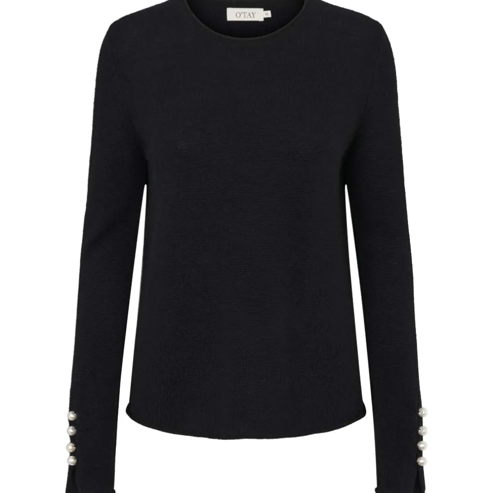 Lækker og elegant bestseller cashmere strik fra O’tay med flotte perleknapper ved ærmerne. Strikken er lavet af det blødeste cashmere uld, som er meget komfortabelt. Fås i flere farver.
