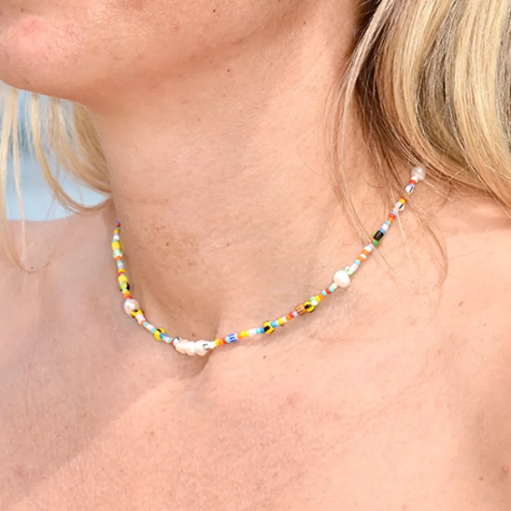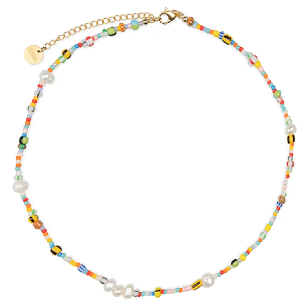 Smuk halskæde med perler i forskellige størrelser og farver. Mix med andre halskæder for et moderne look.