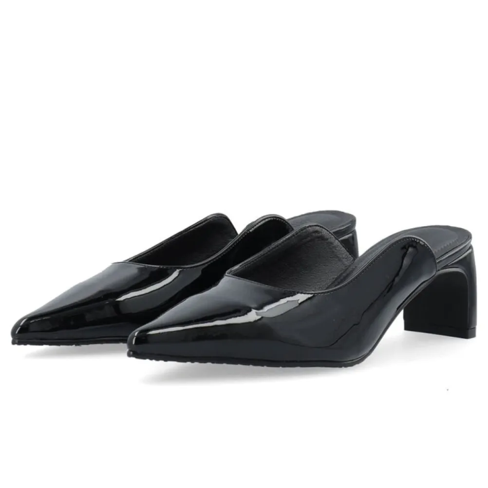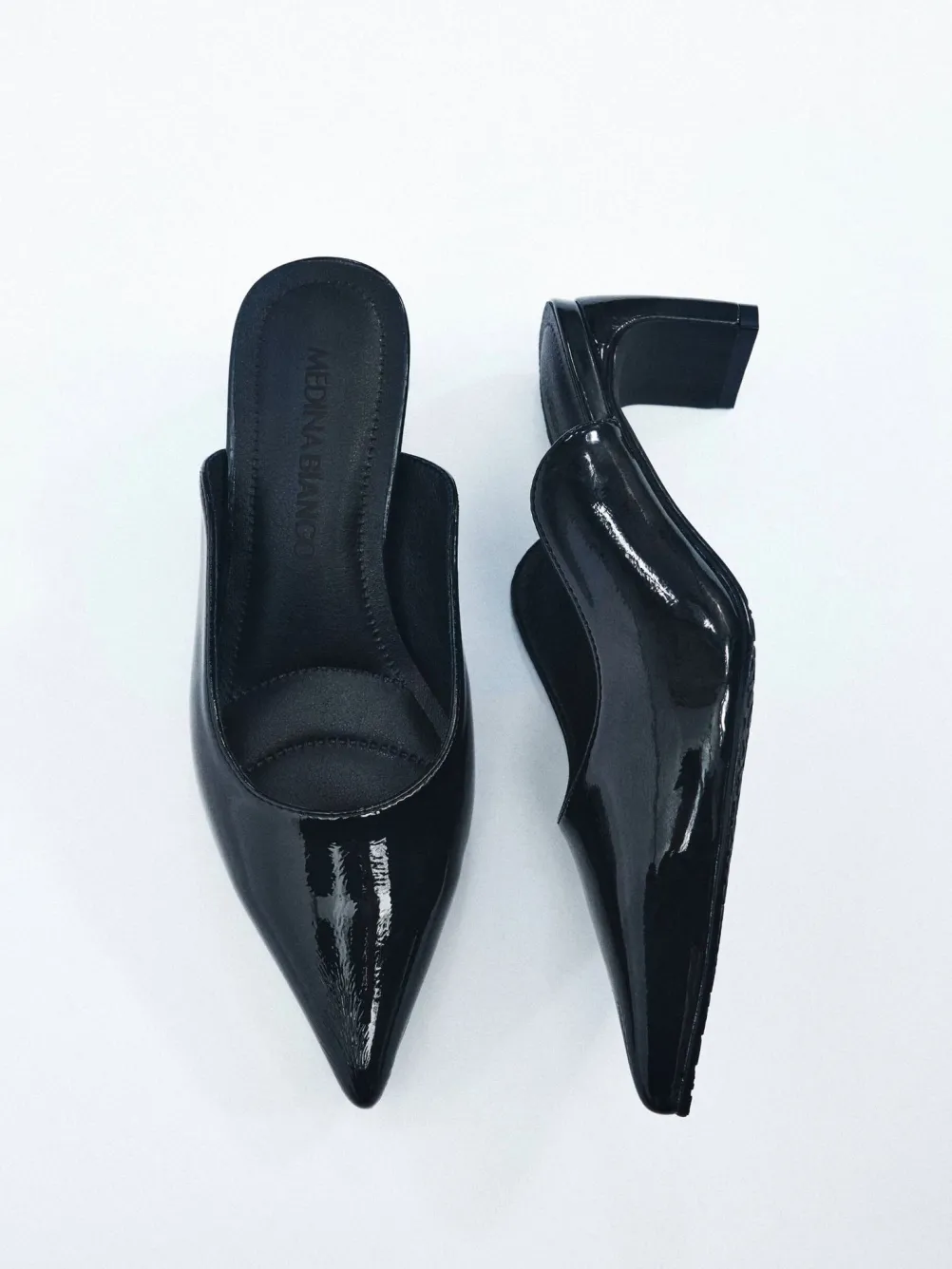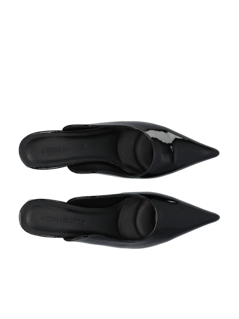 Smukke spidse sko fra Bianco Medina kollektionen. Med overlæder i imiteret lak og blokhæl.